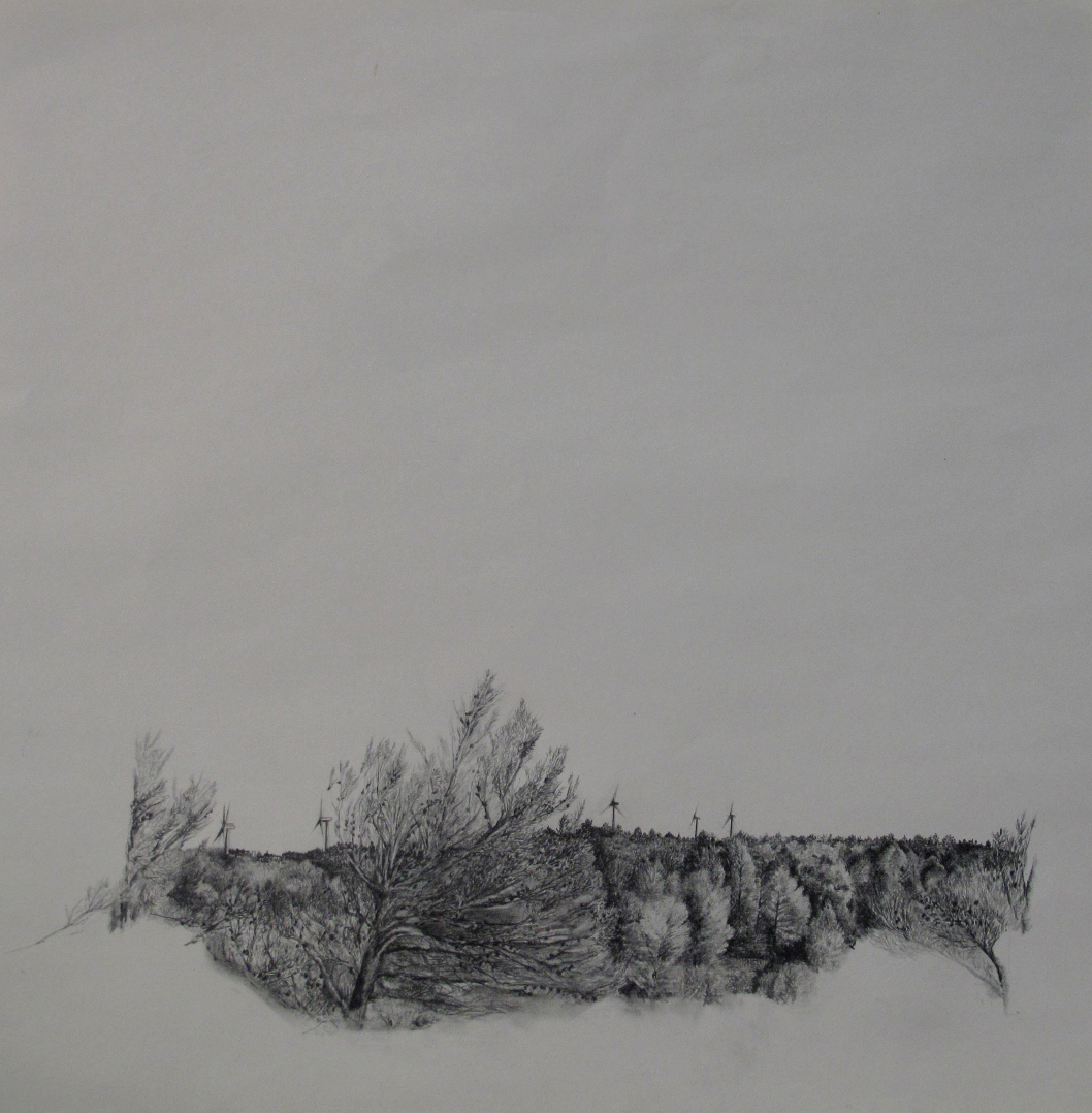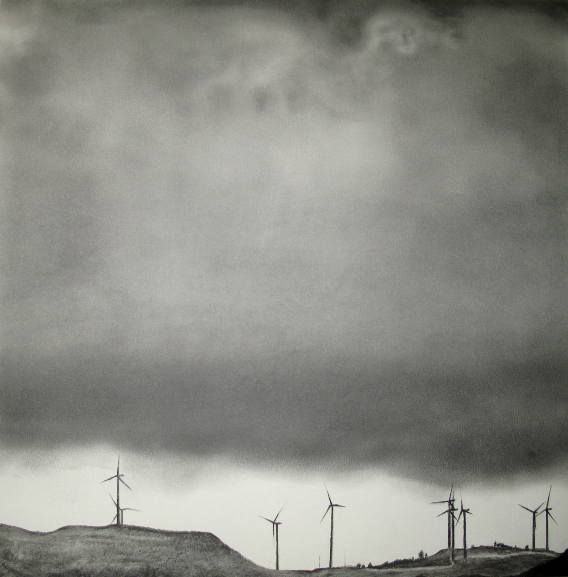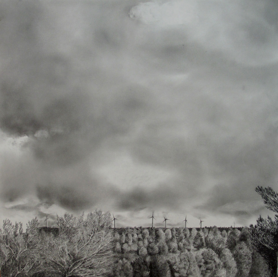 La ambivalencia que suscitan los inmensos campos eólicos sembrados de molinos, es el punto de partida en el que Eva Miquel plantea esta Serie de trabajos. En sus dibujos naturalistas de apariencia y procedimientos clásicos, la autora, incorpora los molinos de viento, que aún siendo elementos industriales y tecnológicos, quedan integrados en el entorno natural, como si fueran parte de la vegetación o de la naturaleza misma. La belleza y la armonía con los que la artista los representa, los convierte en algo inherente a ese lugar, incuestionables formas, ancladas en el horizonte, que componen un paisaje contemporáneo.